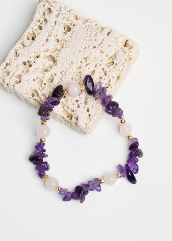 Dorika Top Detaylı Ametist & Pembe Kuvars Doğal Taş Bileklik