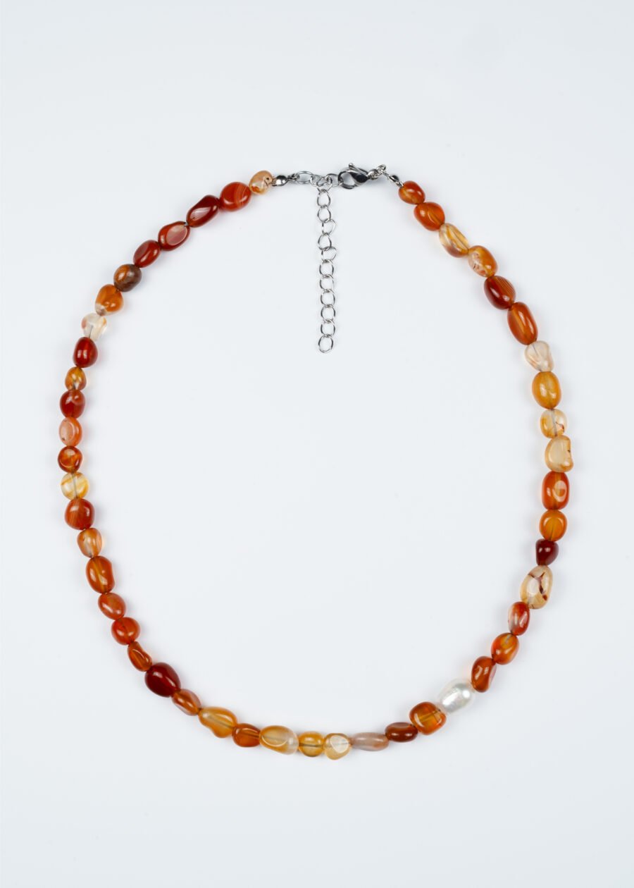 Akik’in güçlü koruyucu ve dengeleyici enerjisi, İnci’nin huzur ve zarafet veren titreşimiyle birleşir. Bu kolye hem enerjisel olarak koruma sağlar hem de zarif bir görünüm sunar.