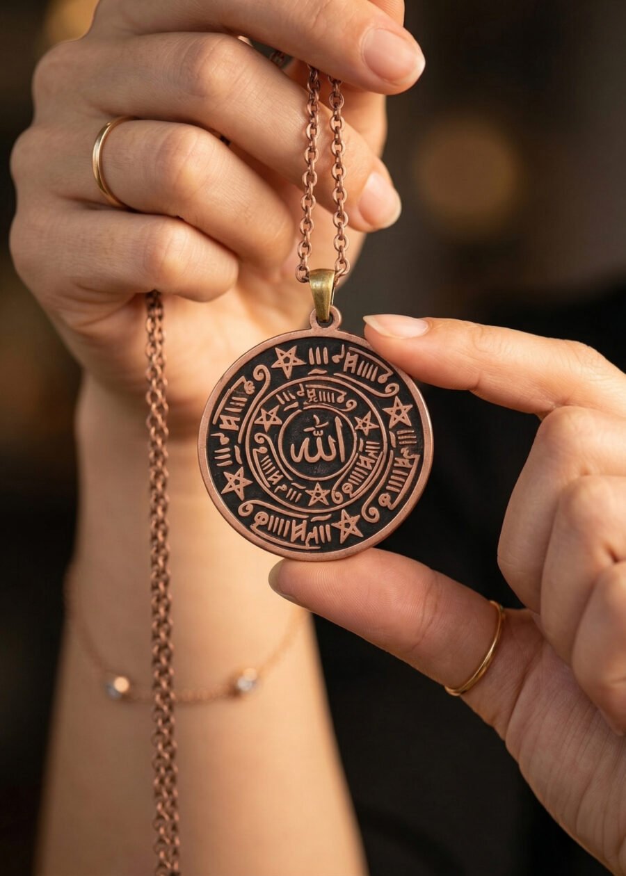 Her bir kolye ustalar tarafından özenle işlenir. Üzerindeki yazılar, vefk düzeni ve detaylar büyük bir titizlikle hazırlanır. Bu nedenle her ürün benzersizdir.