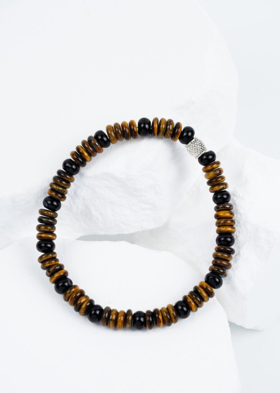 Rondel Kesim Kaplan Gözü & Akik Doğal Taş Bileklik